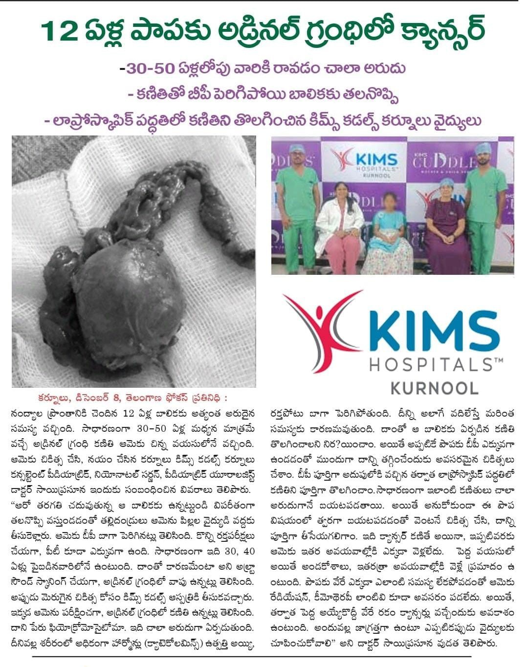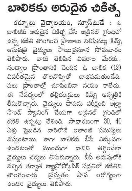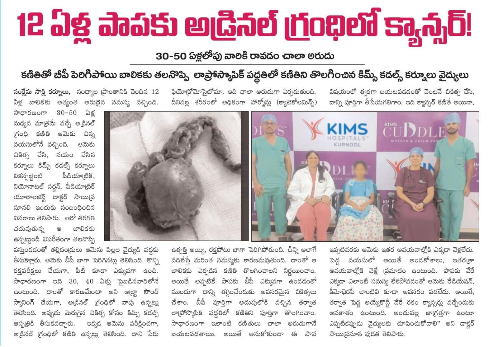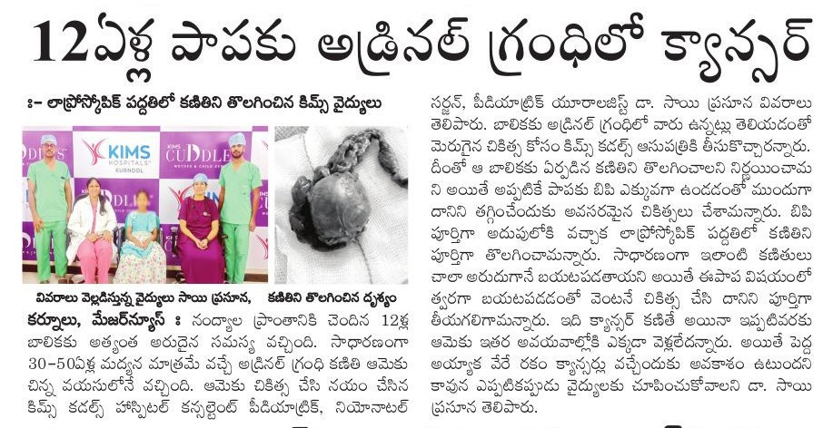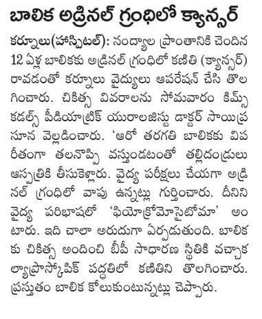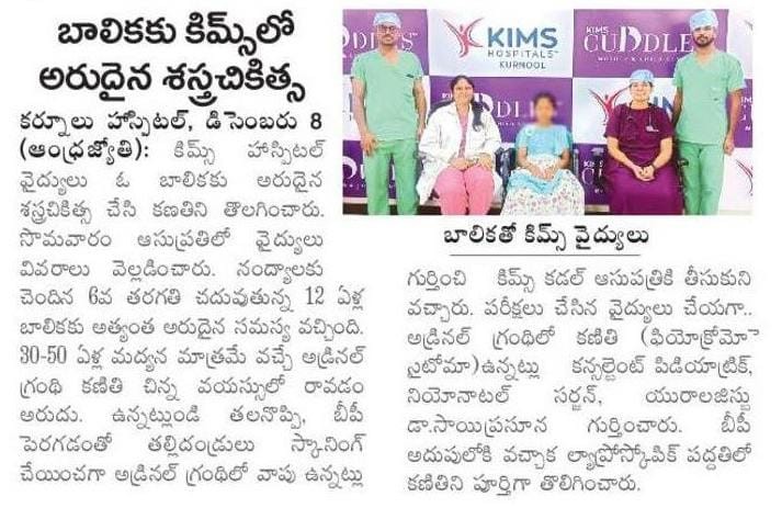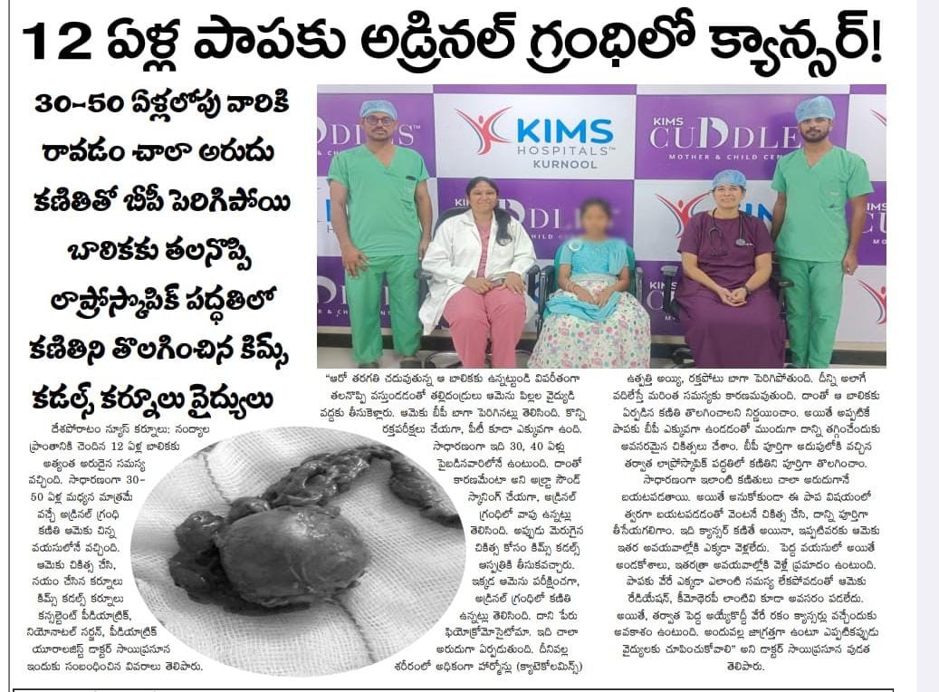 Dr. V. Sai Prasuna successfully treated a 12-year-old girl from Nandyal who was suffering from severe headaches and dangerously high BP.