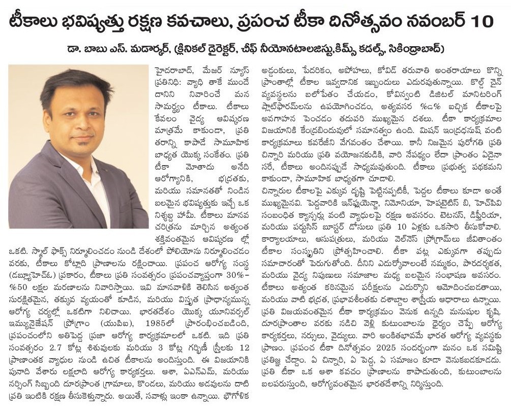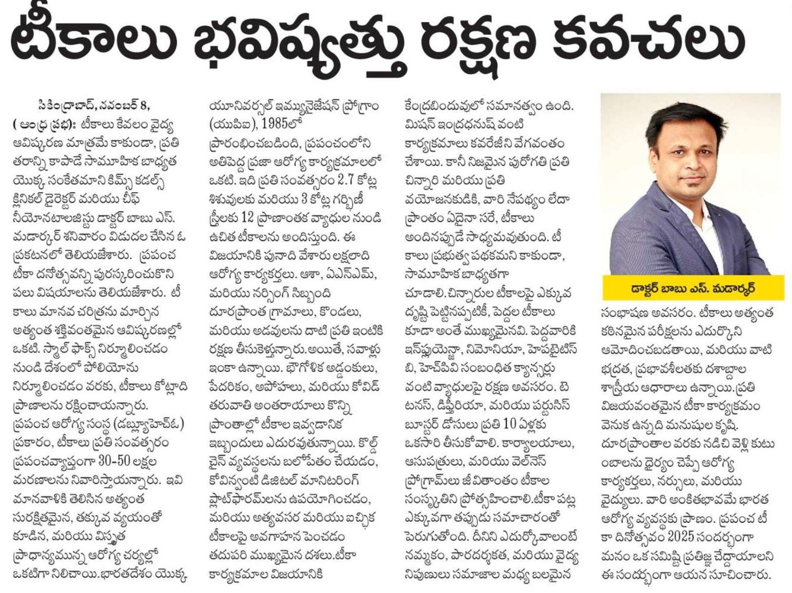 đ©ș Dr. Babu S Madarkar emphasizes that vaccination is a collective responsibility, not just a medical procedure. He highlights key challenges such as vaccine hesitancy, misinformation, and access barriers â and calls for greater awareness, adult vaccination programs, and digital monitoring systems to strengthen Indiaâs immunization network.