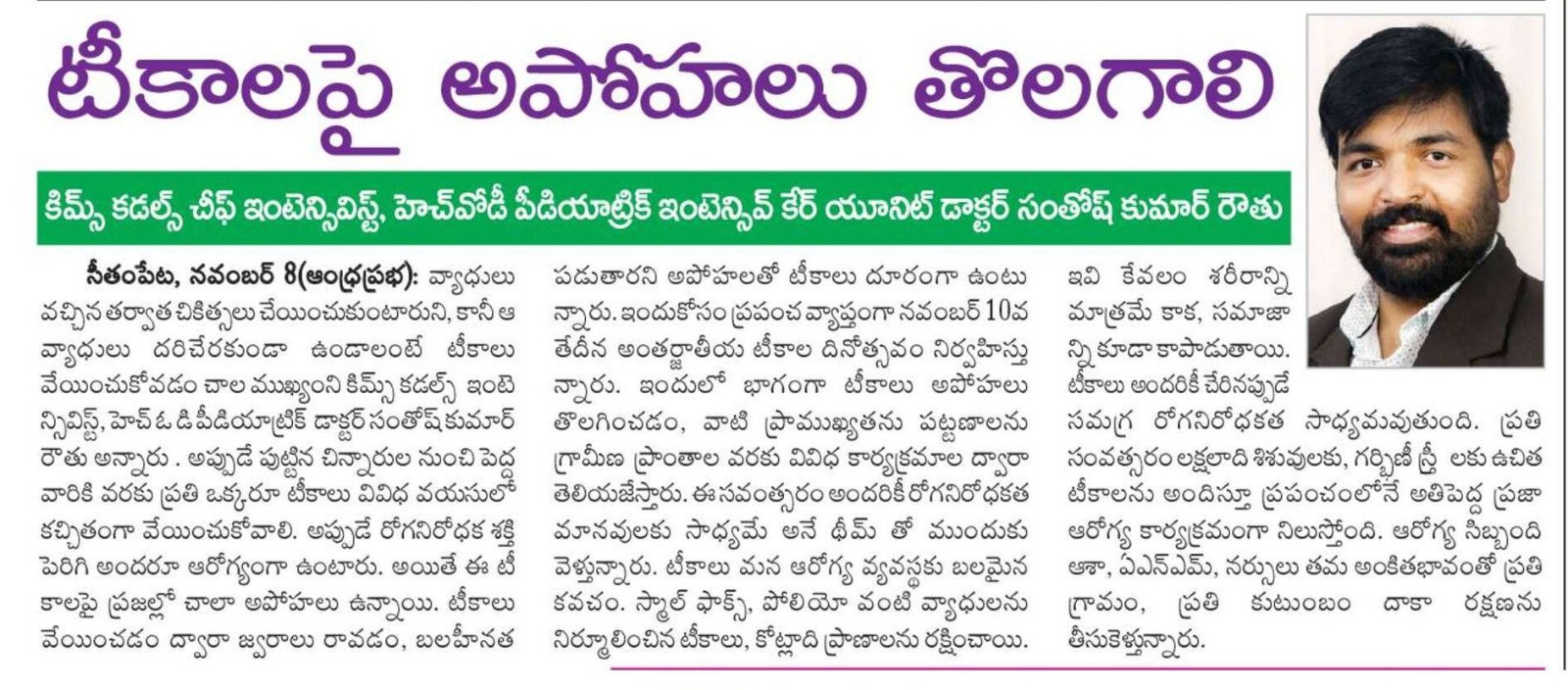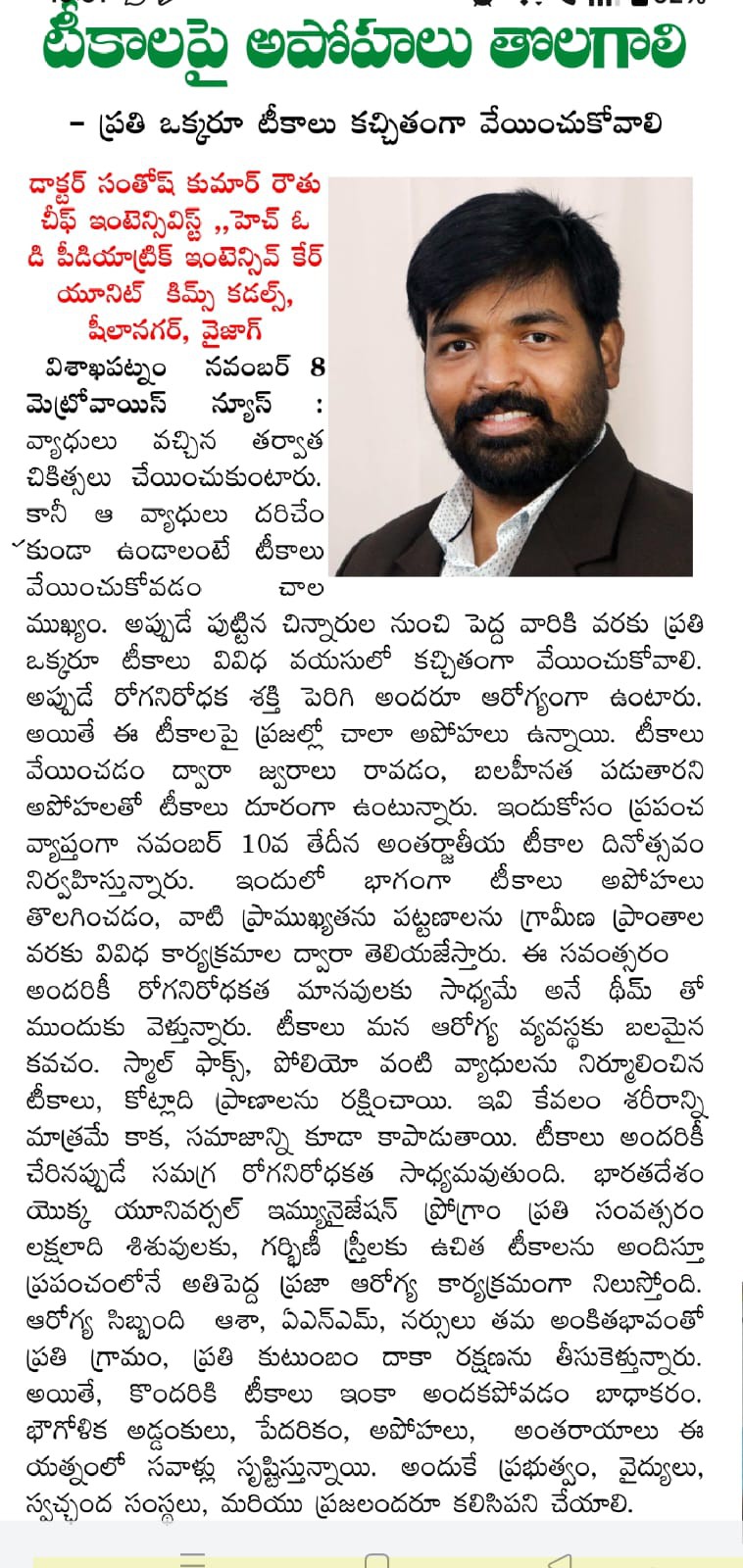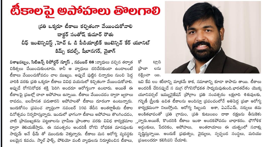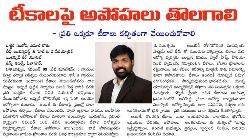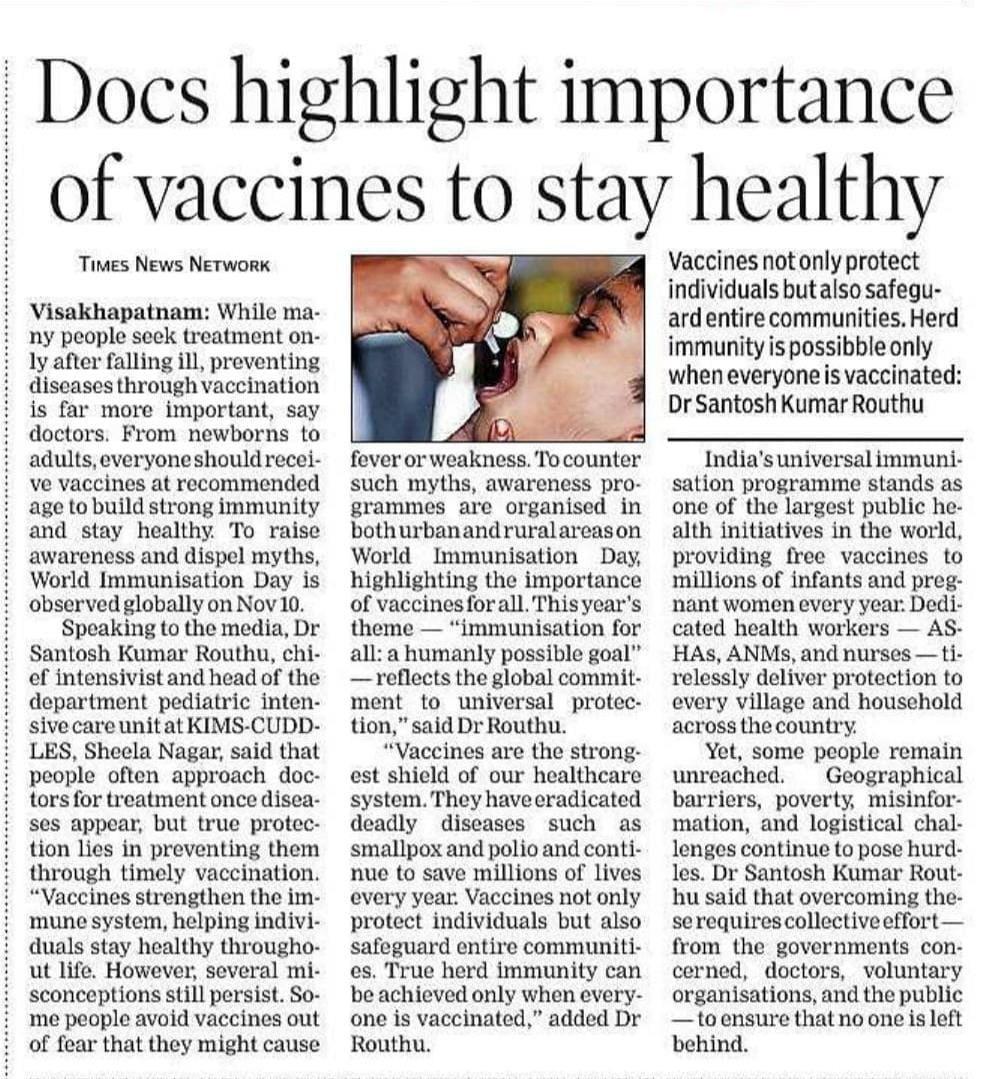 đ©ș Dr. Santosh Kumar Routhu reminds us that vaccines have eradicated deadly diseases like smallpox and polio, and continue to save millions of lives each year.